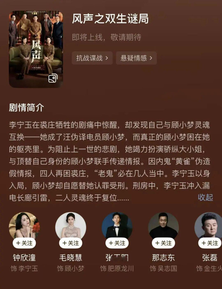 比赛下注app官网版 钟欣潼、毛晓慧主演短剧版《风声》, 《风声之双生迷局》发布预报演绎谍战悬疑