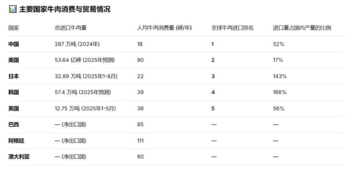 不是我我方在饱读动咱们中国,证实如好意思国农业部(USDA)、中国海关总署、澳大利亚农业资源经济科学局(ABARES)、蚁集国商品营业统计数据库(UN Comtrade)等机构的数据闪现,到了2025年,我国的年总入口牛肉量为287万吨,是世界第一!但是关键在于东说念主均蹧跶牛肉量仅有18磅,这意味着中国的契机格外大!