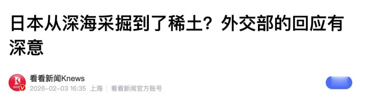 看看新闻——日本从深海采掘到了稀土?外交部的回应有深意