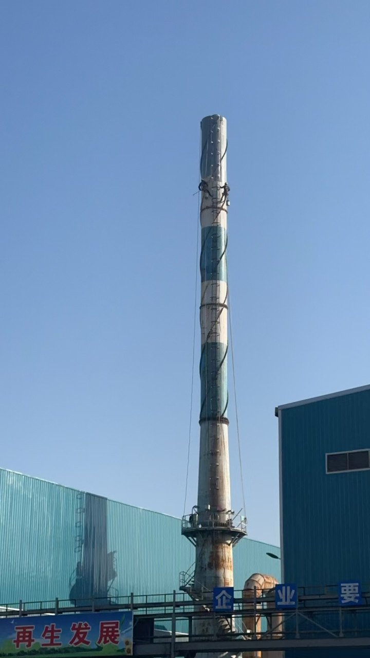 比赛下注app 烟囱环保标志涂料涂刷竣工 环保涂料刷塔身