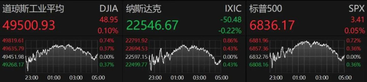 中概股方面,纳斯达克中国金龙指数小幅收跌。腾讯音乐涨超4%,快乐彩app百胜中国涨超3%;新东方、阿里巴巴跌超2%,理念念汽车、京东、爱奇艺跌超1%。