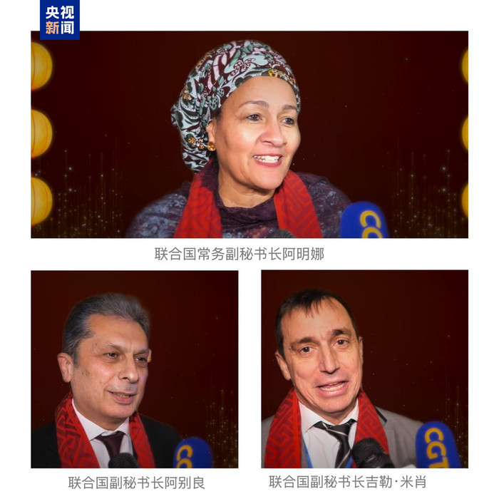 阿明娜、阿别良、吉勒·米肖在视频传话中祝贺环球马年幸福安康,共同迎来和平旺盛的新一年。