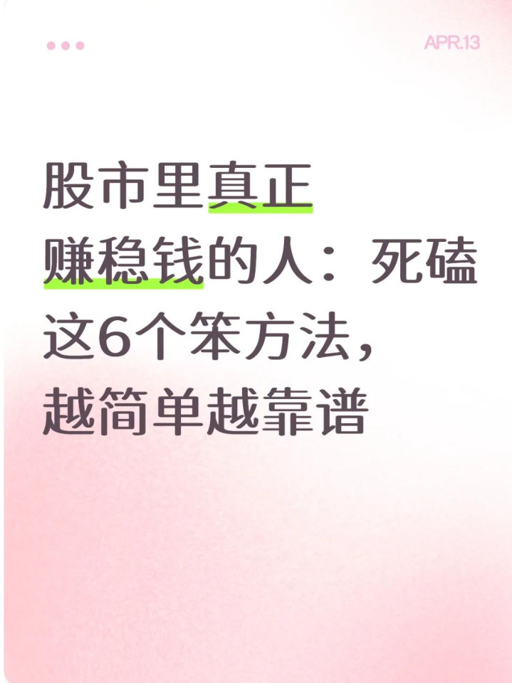 死心2026年4月10日,A股2.69亿股民里,仅21%能盈利,79%亏空,东谈主均亏2.1万、收益率-23.6%。我在股市摸爬滚打16年,见过太多东谈主追热门、炒短线、听音书,终末幸亏底朝天。反倒是那些“笨东谈主”,不折腾、不贪念、守死理,年年稳赚不赔。今天就把这6个最笨、最灵验、鄙俚东谈主能照作念的要领全讲透,莫得花里胡梢的手段,全是实盘考据的干货,学会就能跳出亏空怪圈。