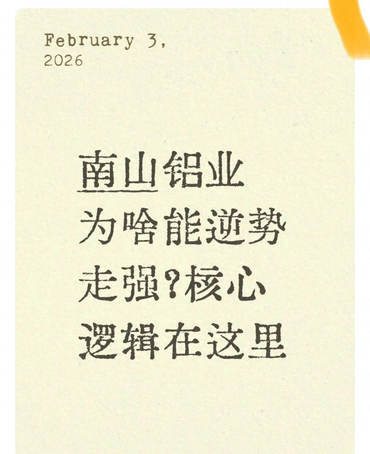 如果觉得这篇文章帮你理清了南山铝业逆势走强的核心逻辑和铝行业的转型趋势,别忘了点赞收藏,转发给身边关注铝业股、有色金属板块的朋友。关注我,后续会持续用大白话分享有色金属、新能源等热门赛道的行业分析和核心逻辑,带你看懂市场背后的门道,避开盲目投资的坑。